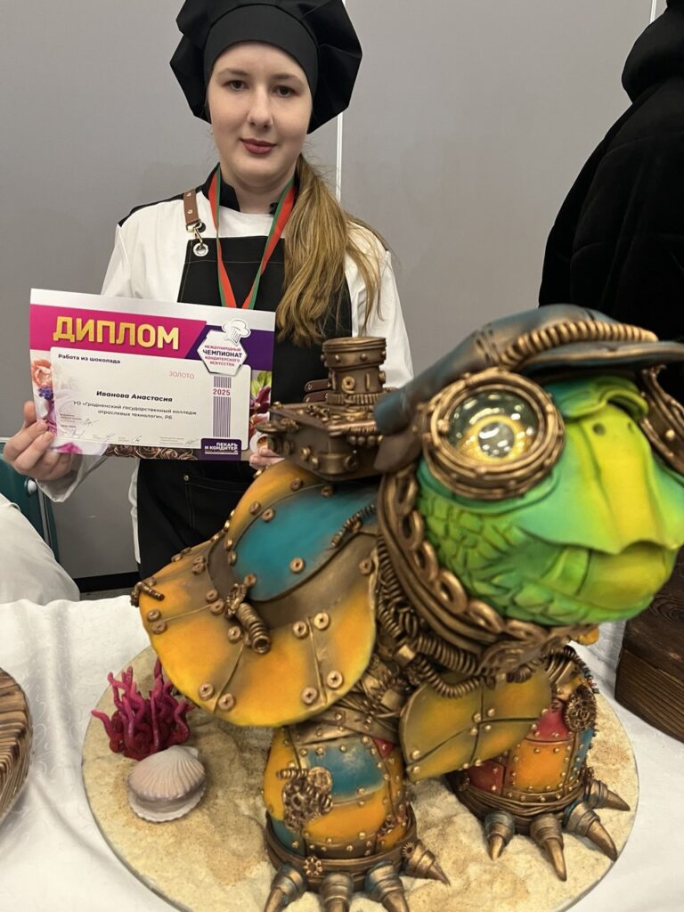 номинация «Работа из шоколада» – золотая медаль (Иванова А.А., учащаяся Гродненского государственного колледжа отраслевых технологий);