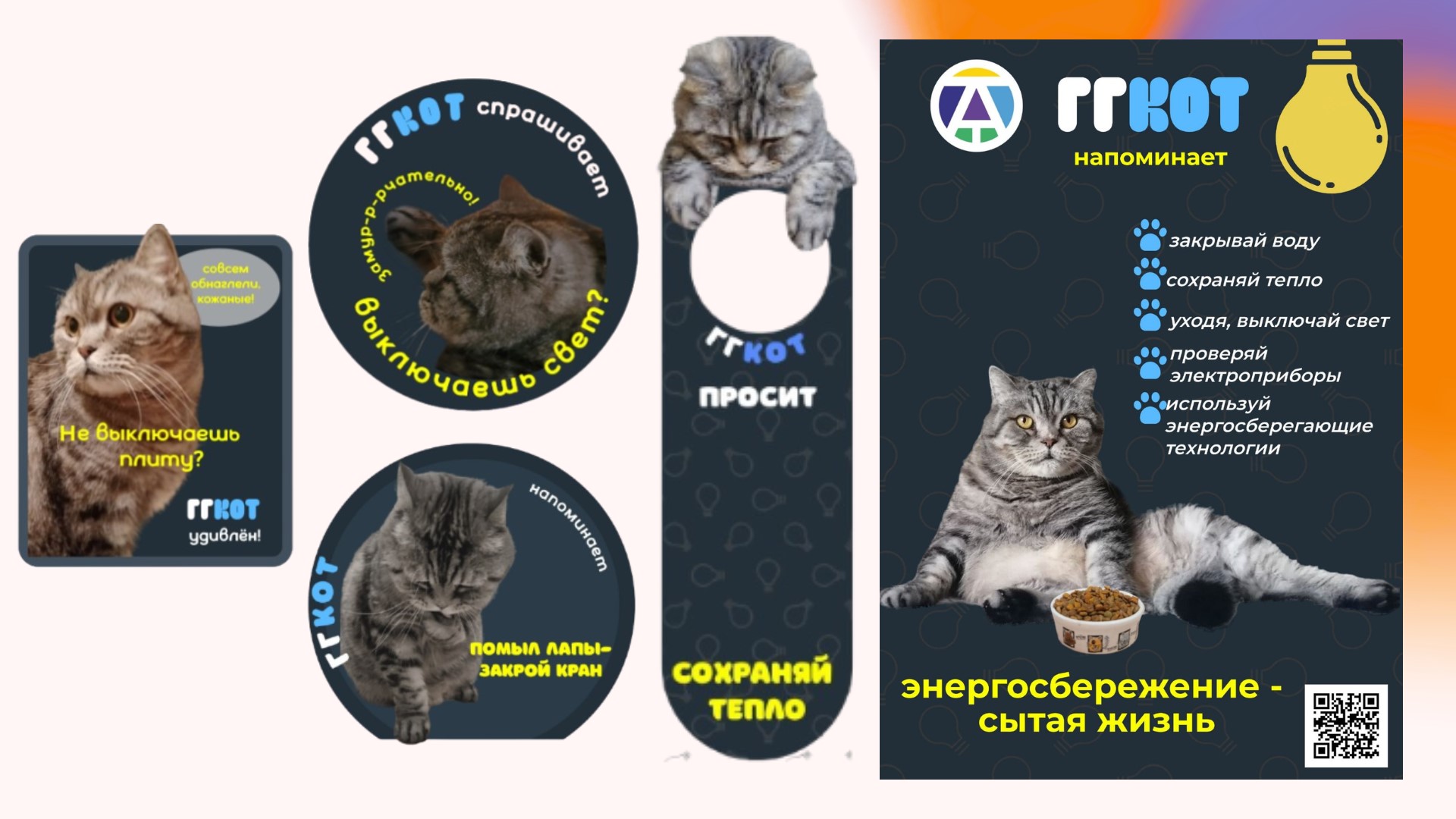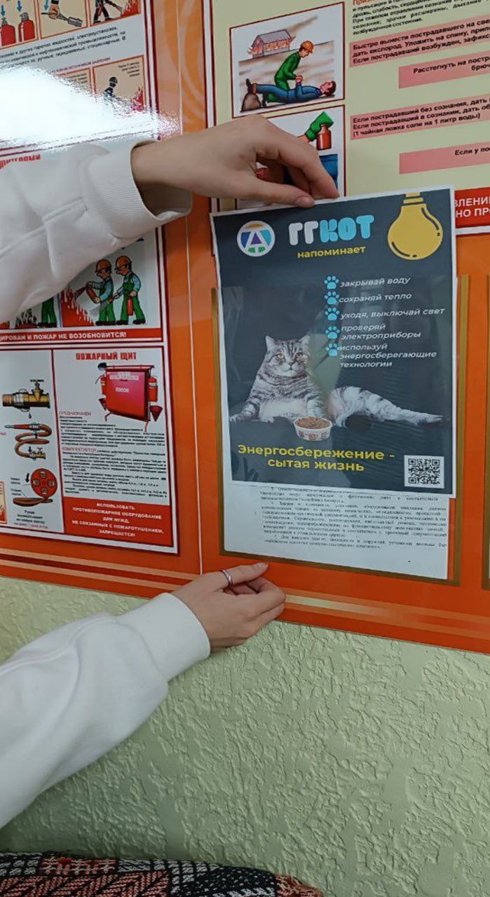 Сегодня работа по созданию энергоэффективного пространства активно продолжается уже в учебном корпусе. Особое внимание уделяется фирменному стилю: все материалы оформлены в единой концепции с участием кота Барсика и слоганами «ГГКОТ напоминает…», «ГГКОТ рекомендует…», «ГГКОТ просит…». Такой подход делает проект позитивным, лёгким для восприятия и вызывает желание следовать советам.