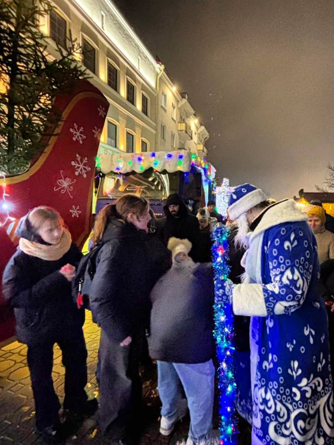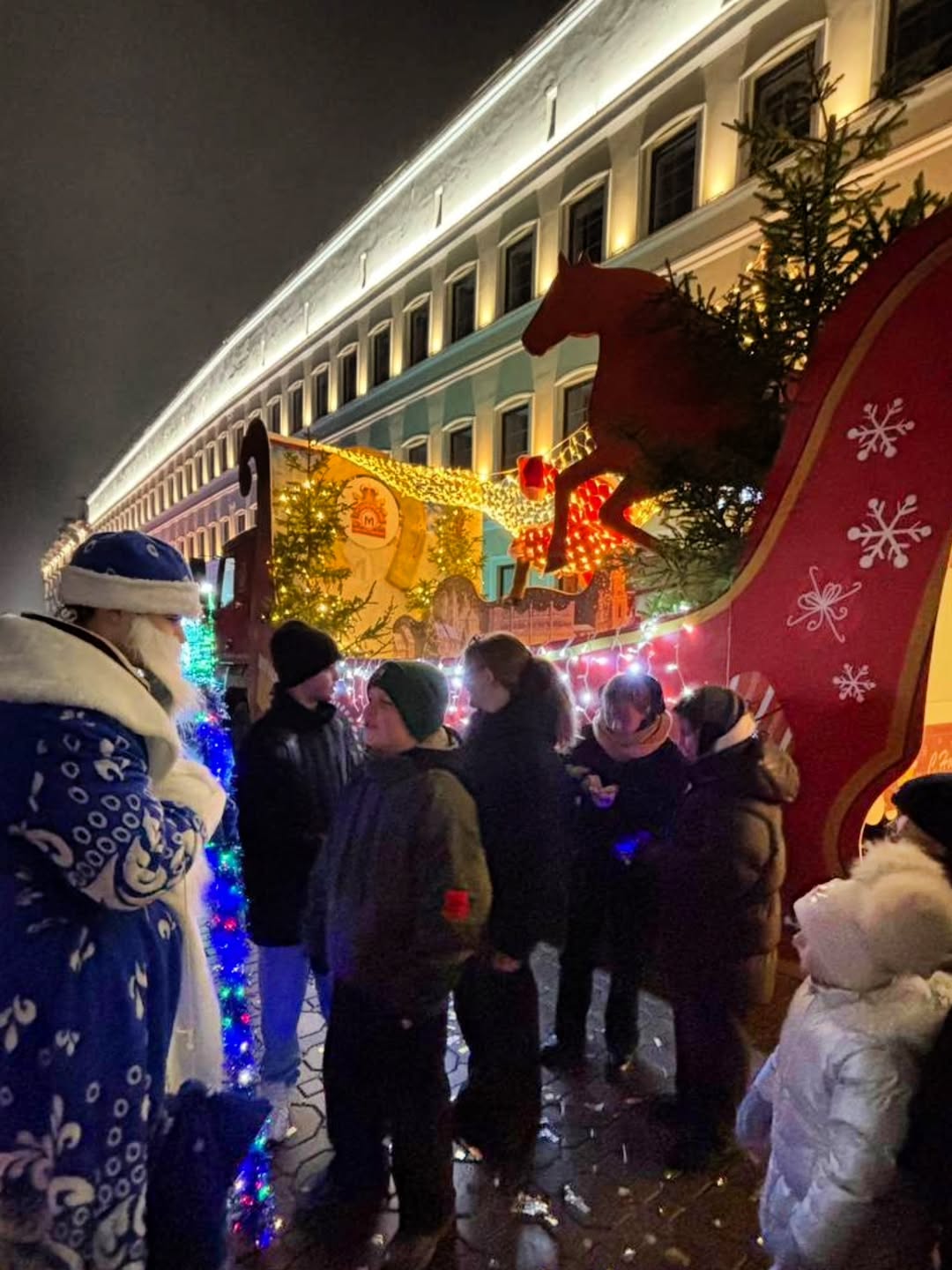 В этом году общая колонна объединила более 700 человек – это Деды Морозы, Снегурочки и другие сказочные персонажи. Под звуки инструментов участники прошли по пешеходной Советской. Поздравление с новогодними праздниками звучали со всех сторон.