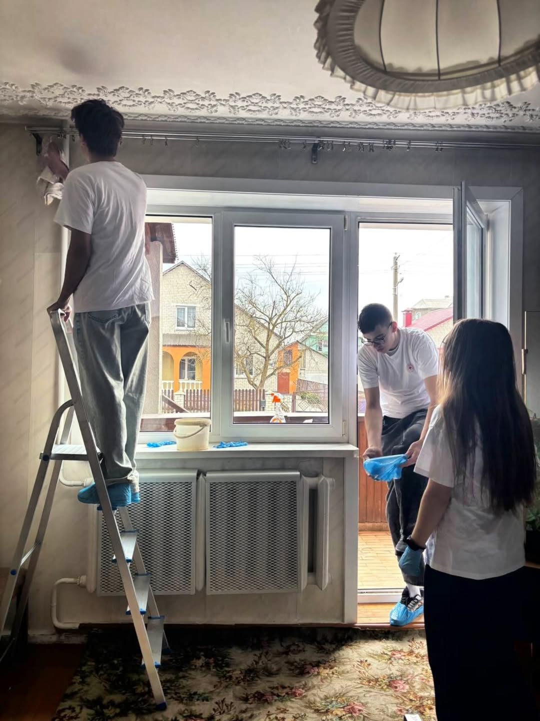 5 марта учащиеся учебной группы 1ППР-волонтеры отряда “Доброе сердце” оказали помощь в наведении порядка в доме ветерану труда Жолик Анне Ивановне. Анне Ивановне 86 лет и ей было бы очень тяжело выполнить всю эту работу по дому. Ребята охотно откликнулись на просьбу об оказании помощи: вымыли окна, протерли пыль и повесили тюль.