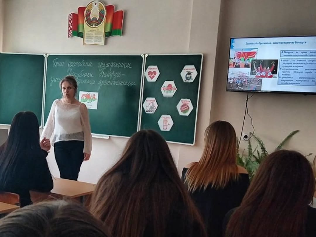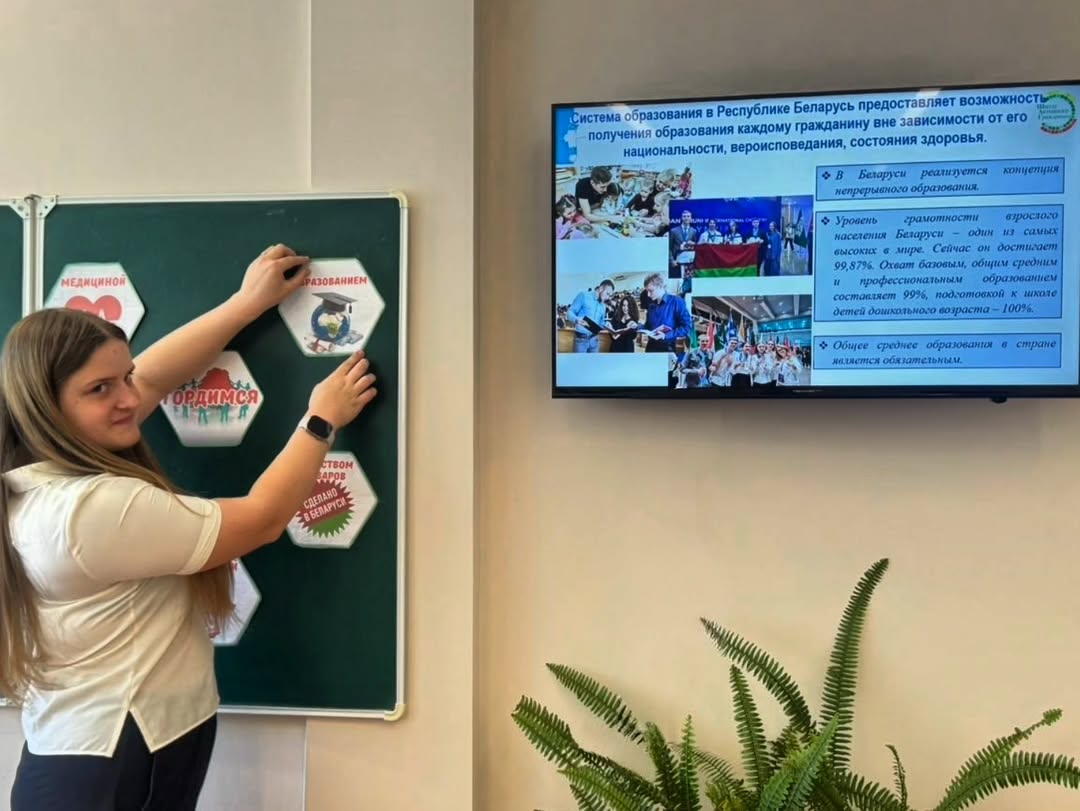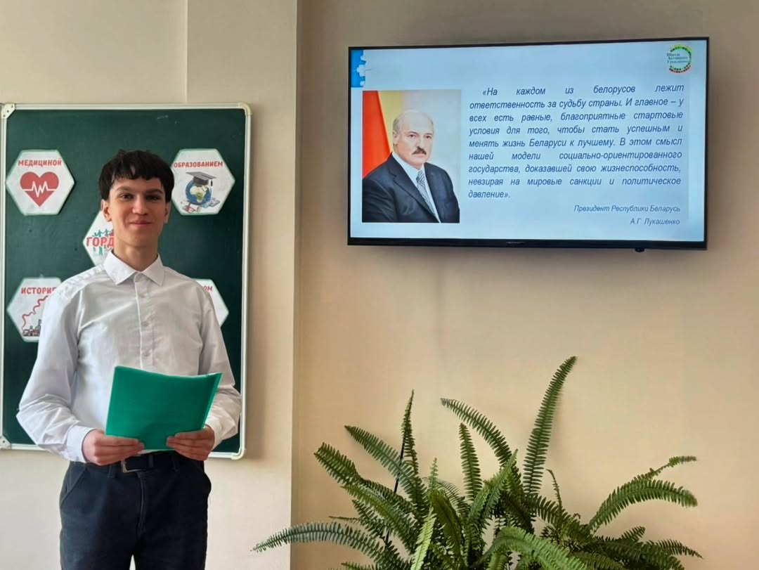 23.04.2026 во всех учебных группах группах 1 и 2 курсов в рамках информационно- образовательного проекта “ШАГ” прошло внеклассное мероприятие, посвященное достижениям Беларуси в разных отраслях и сферах деятельности.