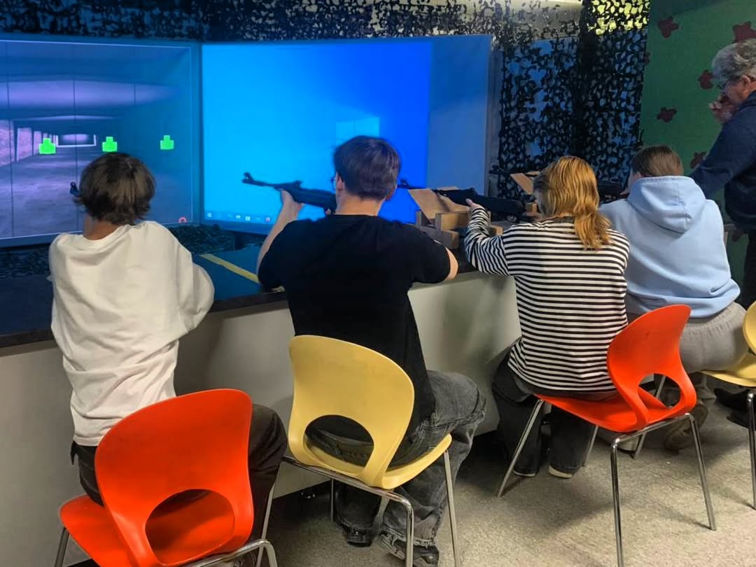 Также участники ознакомились с экспозицией по тематике Вооруженных Сил, которые подготовили организаторы из лазерного интерактивного тира “TOP GAN “.
